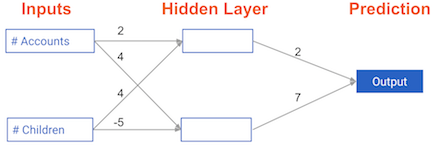 Each data point is a customer. The first input is how many accounts they have, and the second input is how many children they have. The model will predict how many transactions the user makes in the next year.